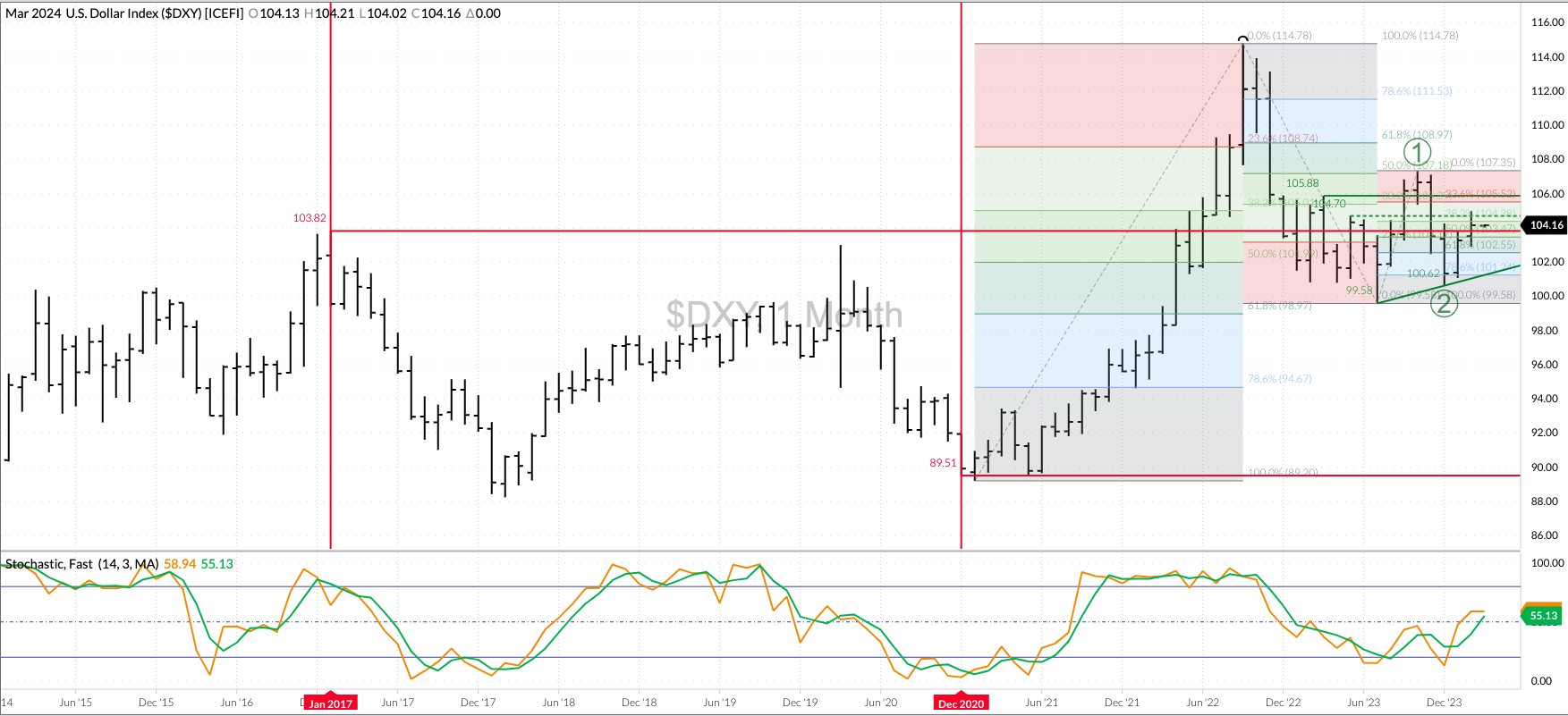 The US dollar index ($DXY): The $DXY remains in a major (long-term) 5-wave uptrend. The December low of 100.62 looks to be the bottom of Wave 2 (of a 5-wave [...]