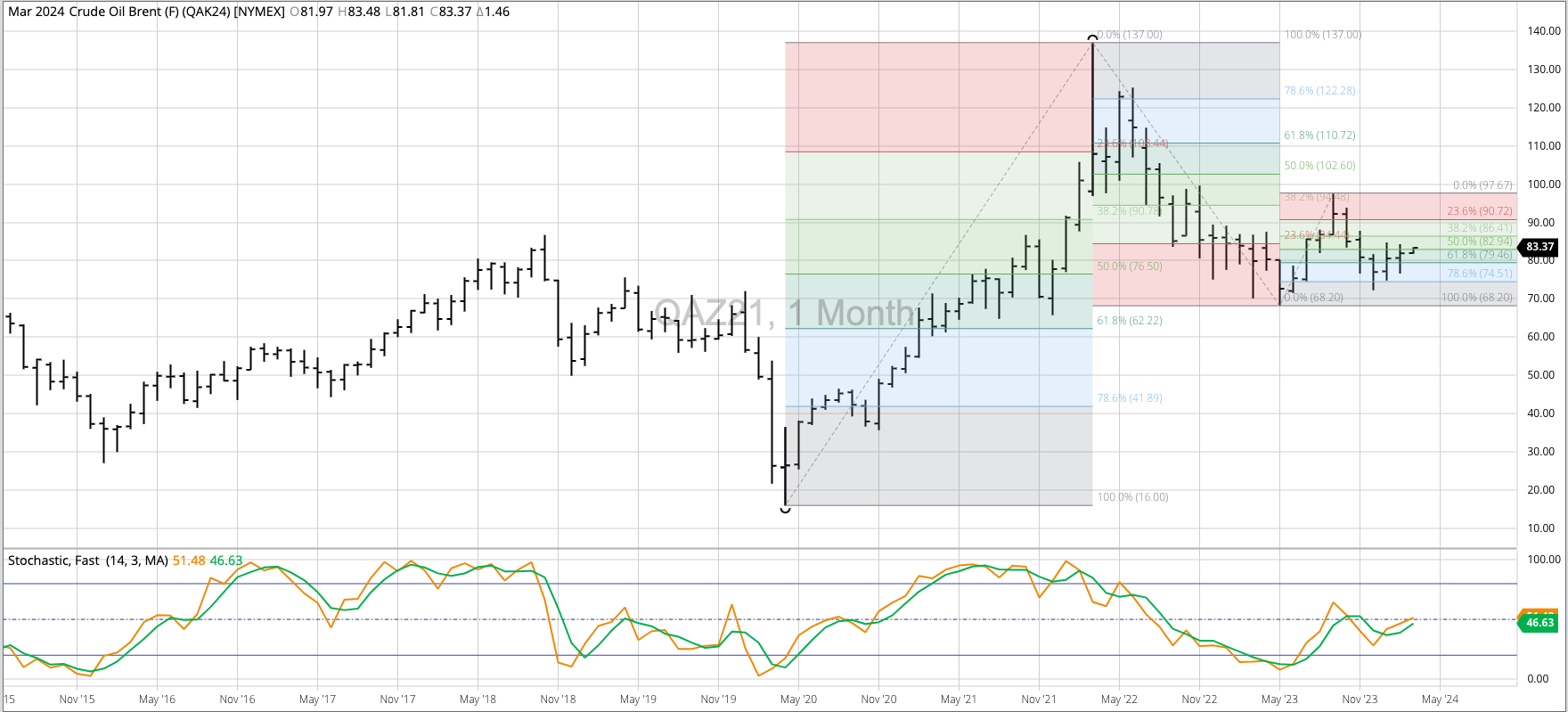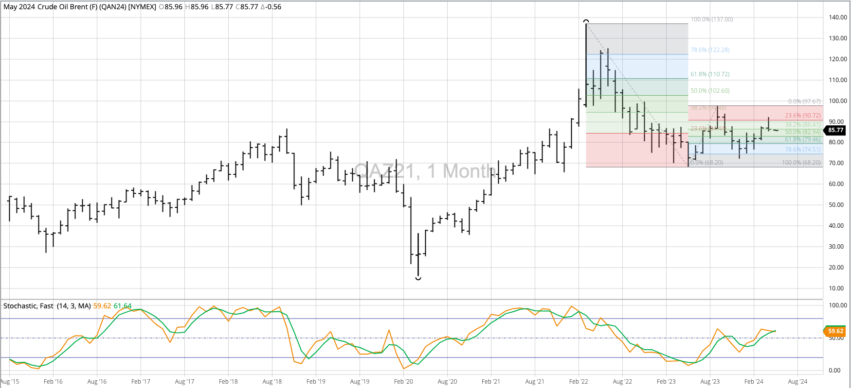 Brent crude (QA) remains in a major (long-term) uptrend with the December low looking to be a Wave 2 trough of the 5-wave pattern. The spot-month contract posted a December [...]