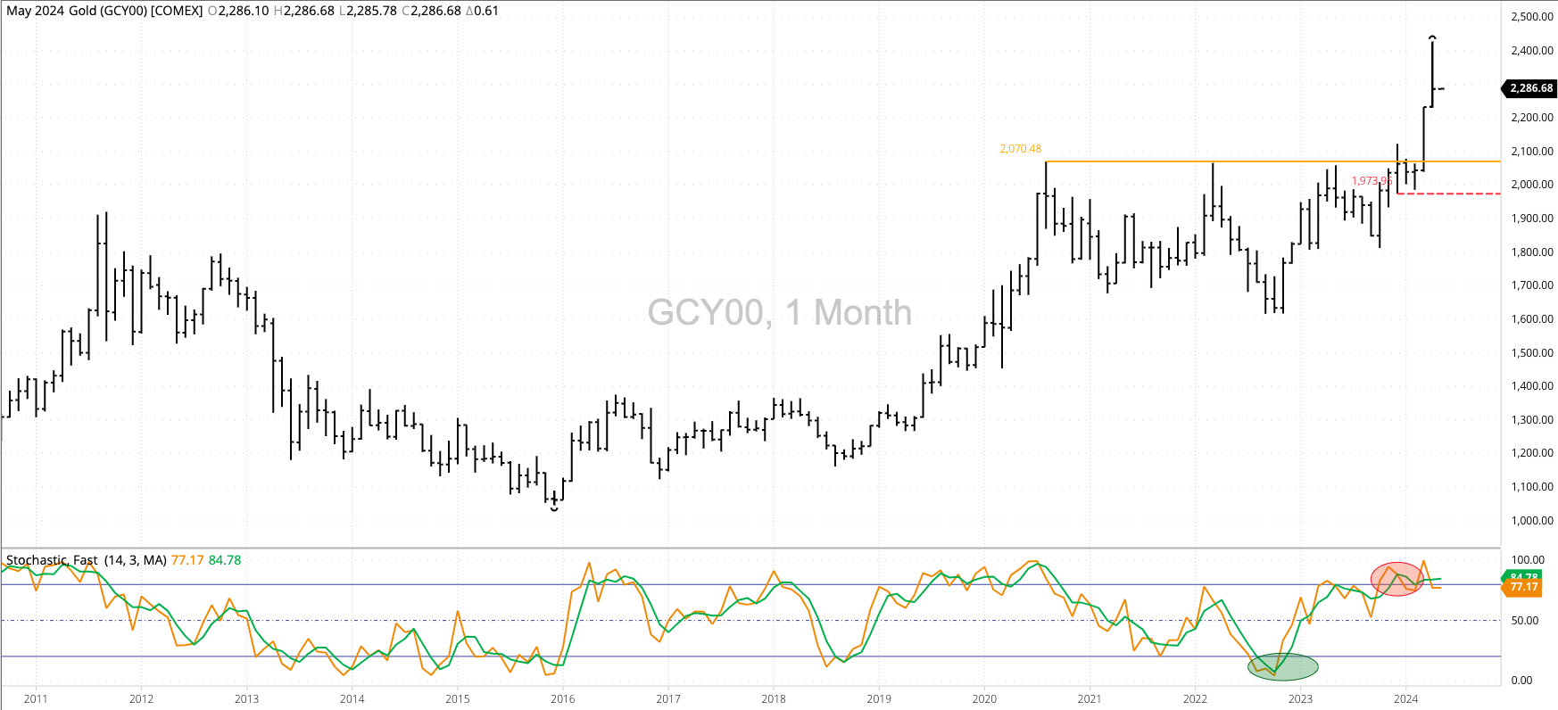 Gold (Cash Index): The cash index (GCY00) extended its major (long-term) uptrend to a high of $2,427.00 before closing April at $2,286.07. The market remains sharply overbought, a factor that [...]