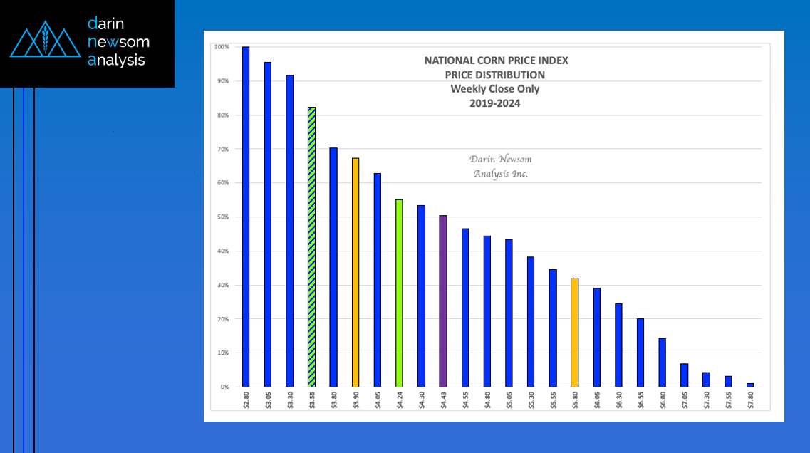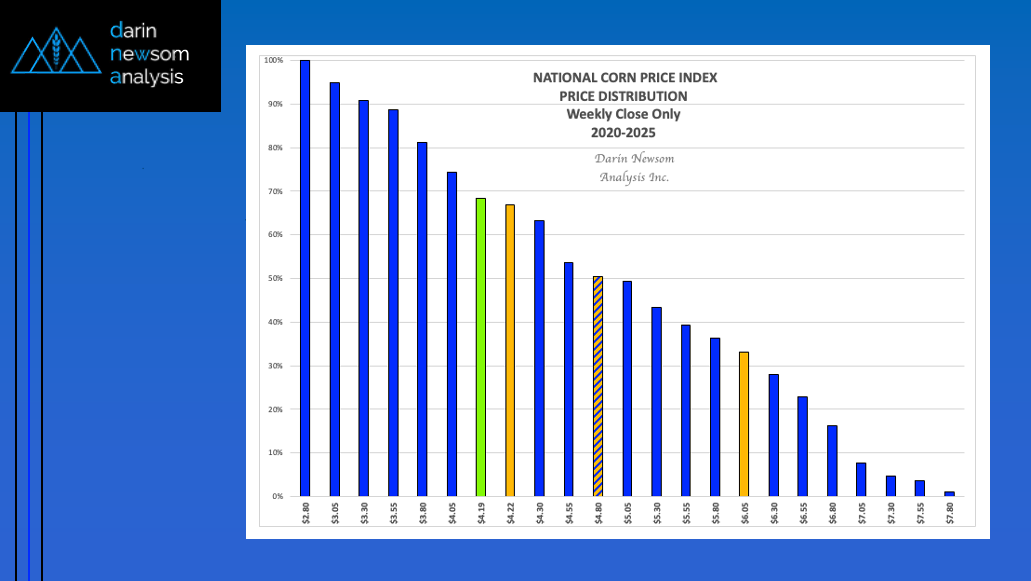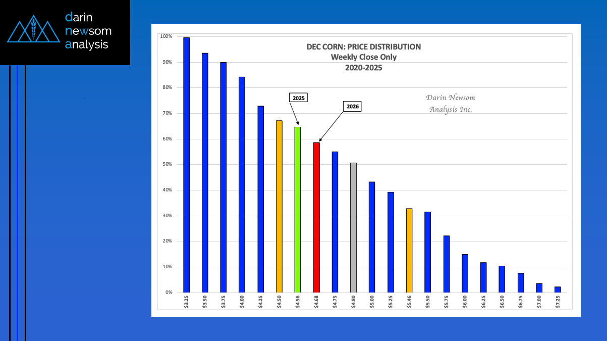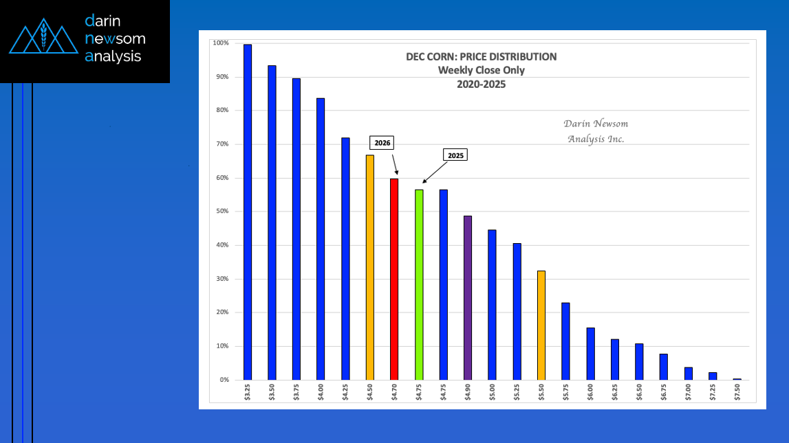 As mentioned in Monday's Chart of the Day, the Dec25 corn contract has dipped into the lower-third of its price distribution range based on weekly closes only back through 2020. [...]