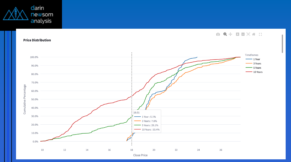 Early Tuesday morning shows: Nov25 priced near $10.30 and Nov26 priced near $10.41 Price Distribution: Neutral-Bullish Nov25 (green column) priced at $10.3025 put it in the lower 37% of the [...]