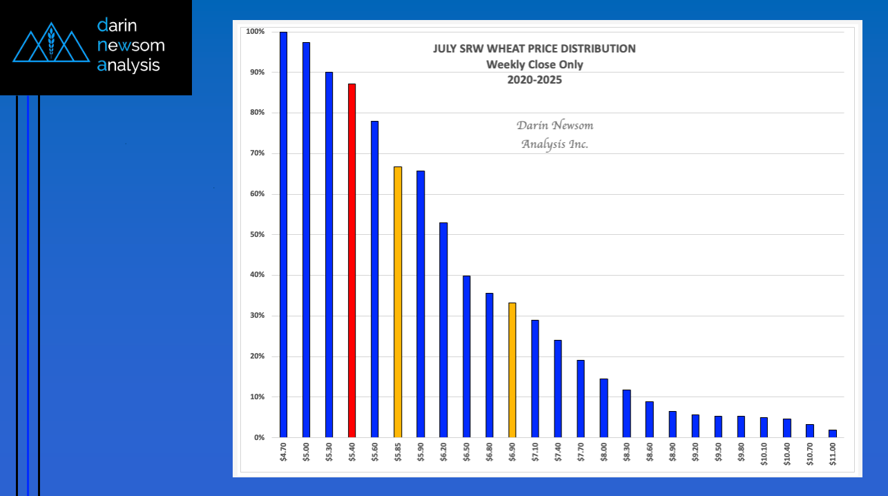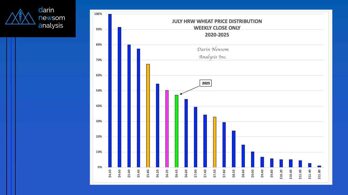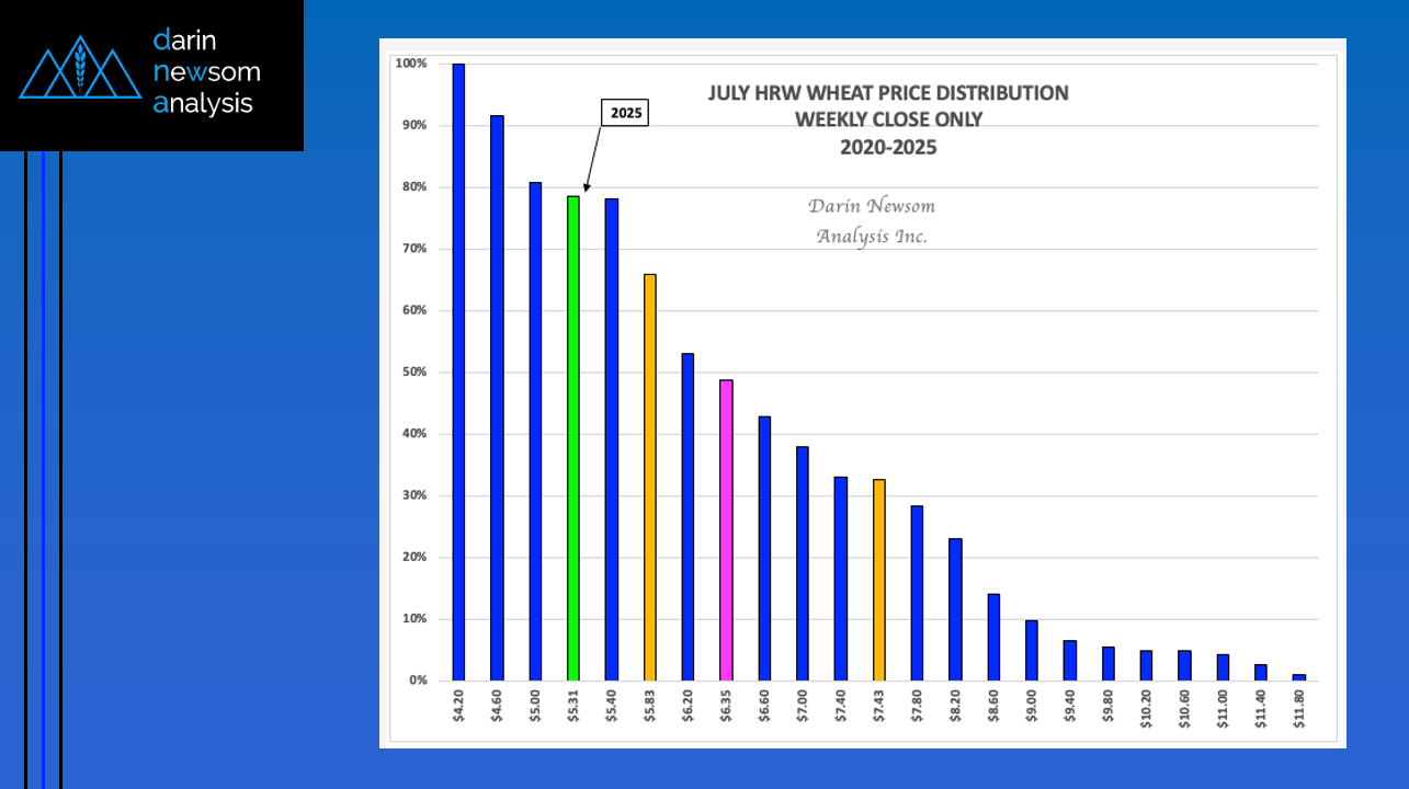 Price Distribution: Bullish The July 2025 HRW Wheat futures contract closed Tuesday (April 29) at $5.31 (green column) putting it in the lower 21% of its price distribution range based [...]