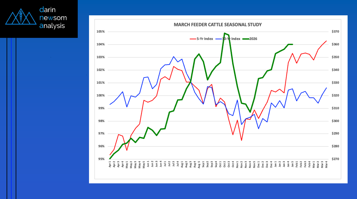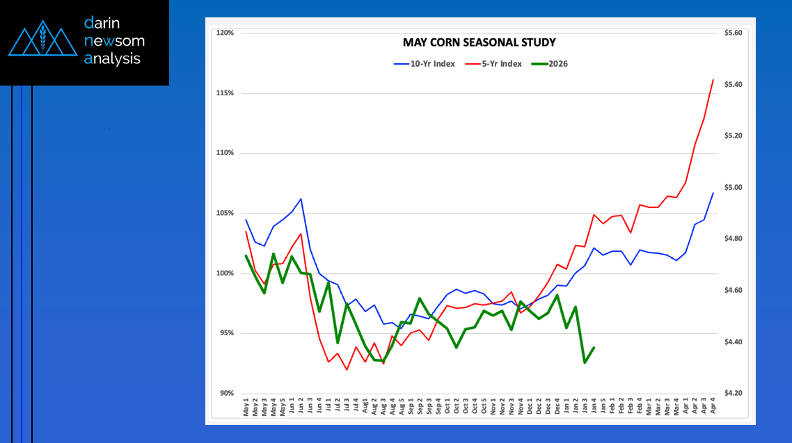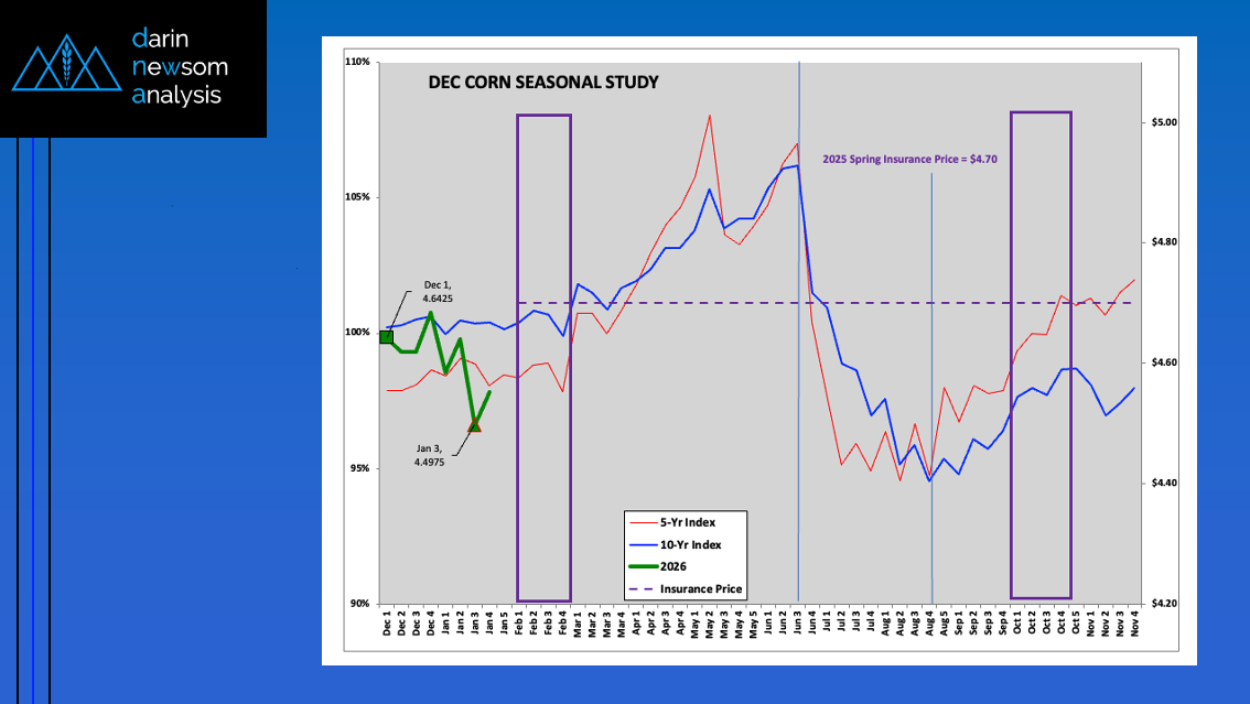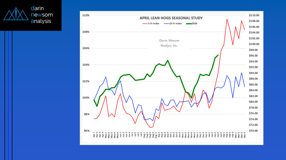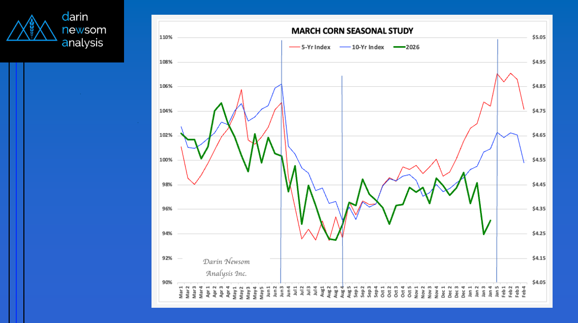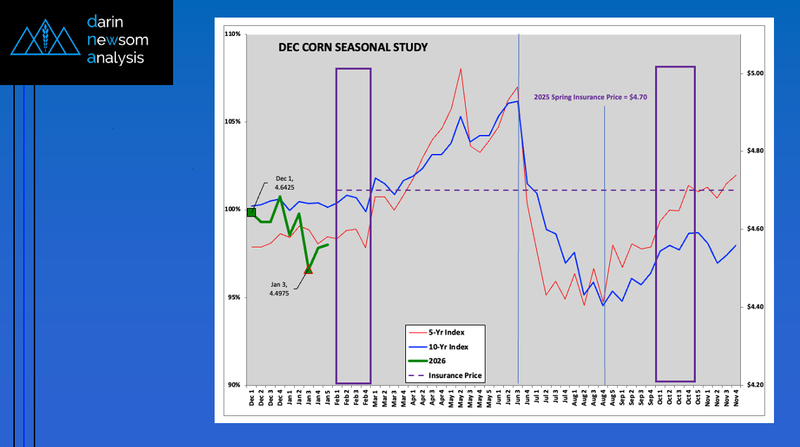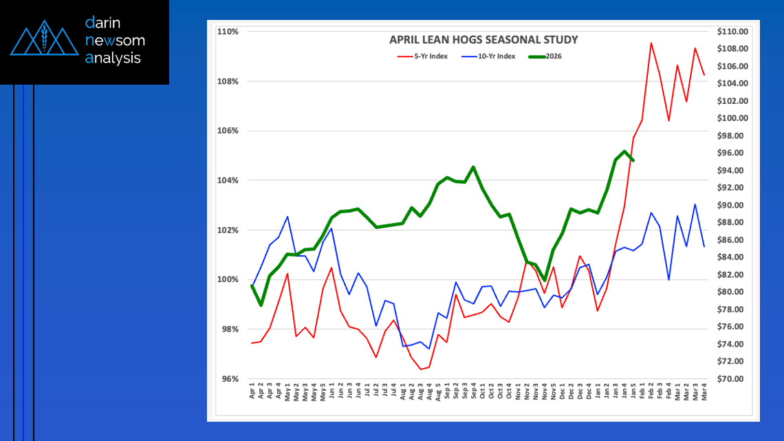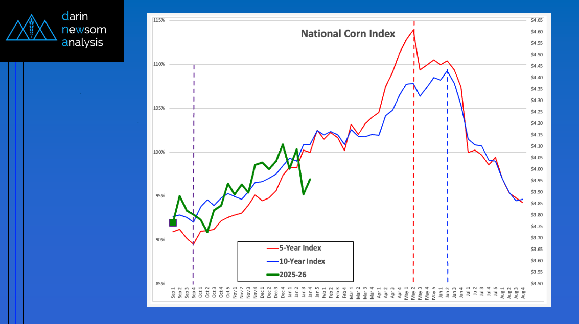 The National Corn Index (slide 1) tends to trend up from the first weekly close of September The 5-year index (red line) shows an average gain of 14% through the [...]