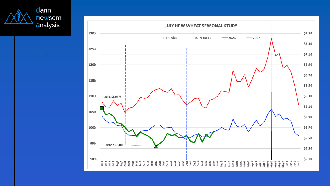 Seasonal Analysis: Bullish The new-crop July HRW futures contract tends to post a low weekly close the first week of December before rallying through the second weekly close of May [...]