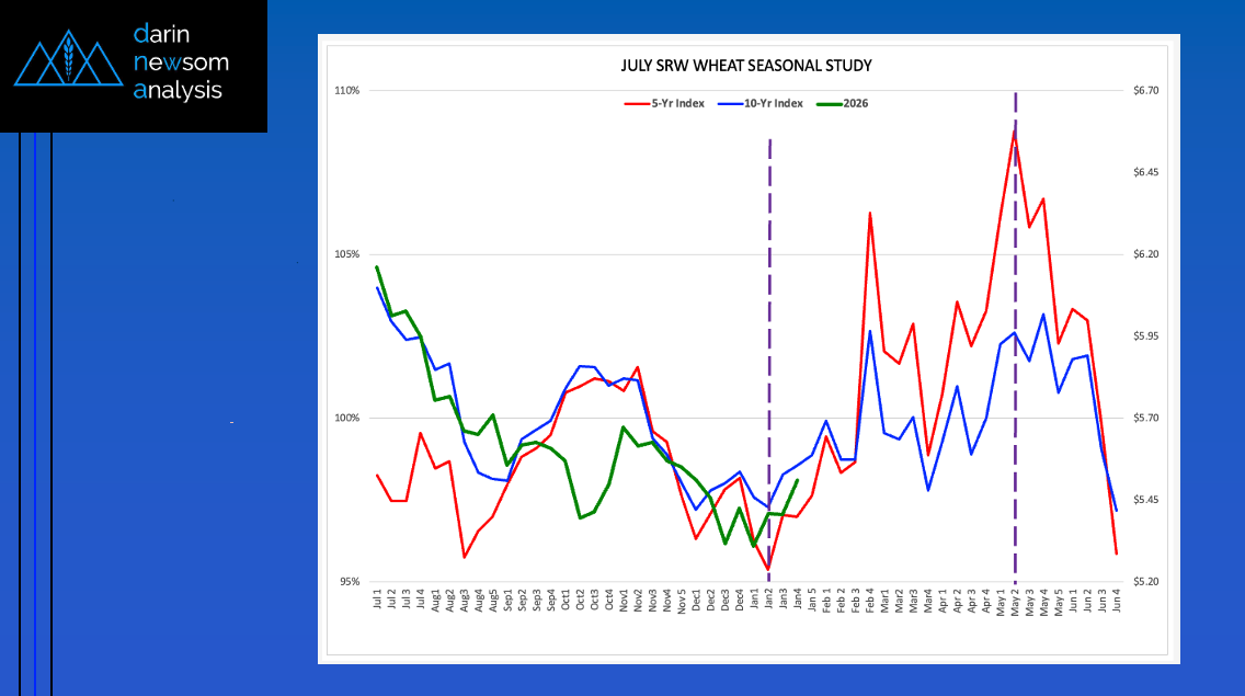 Seasonal Analysis: Bullish The new-crop July SRW futures contract tends to post a low weekly close the second week of January before rallying through the second weekly close of May [...]