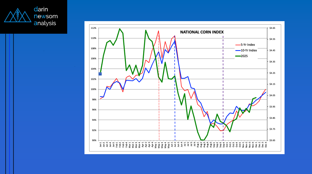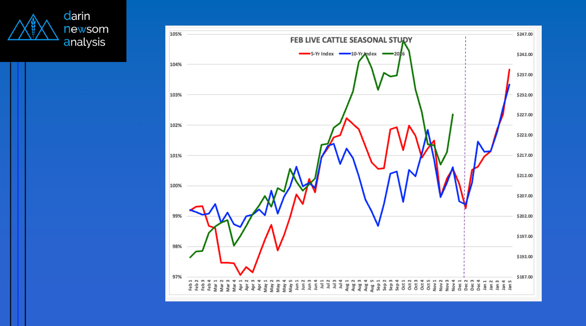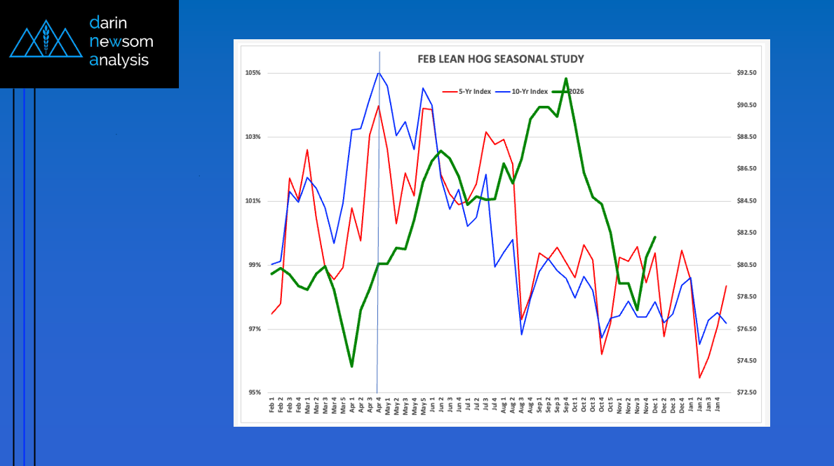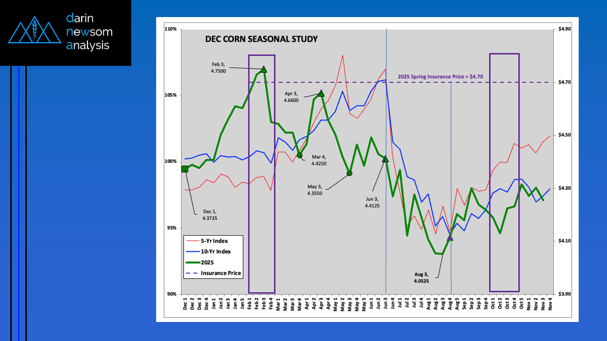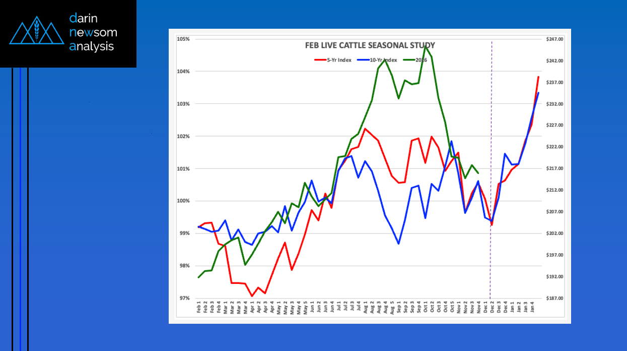 Dec Corn tends to trend up from the fourth weekly close of August through the last weekly close of November The 5-year index (red line) shows an average gain of [...]