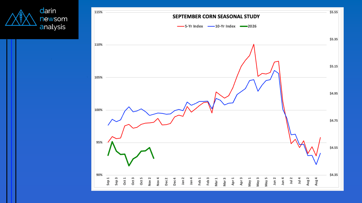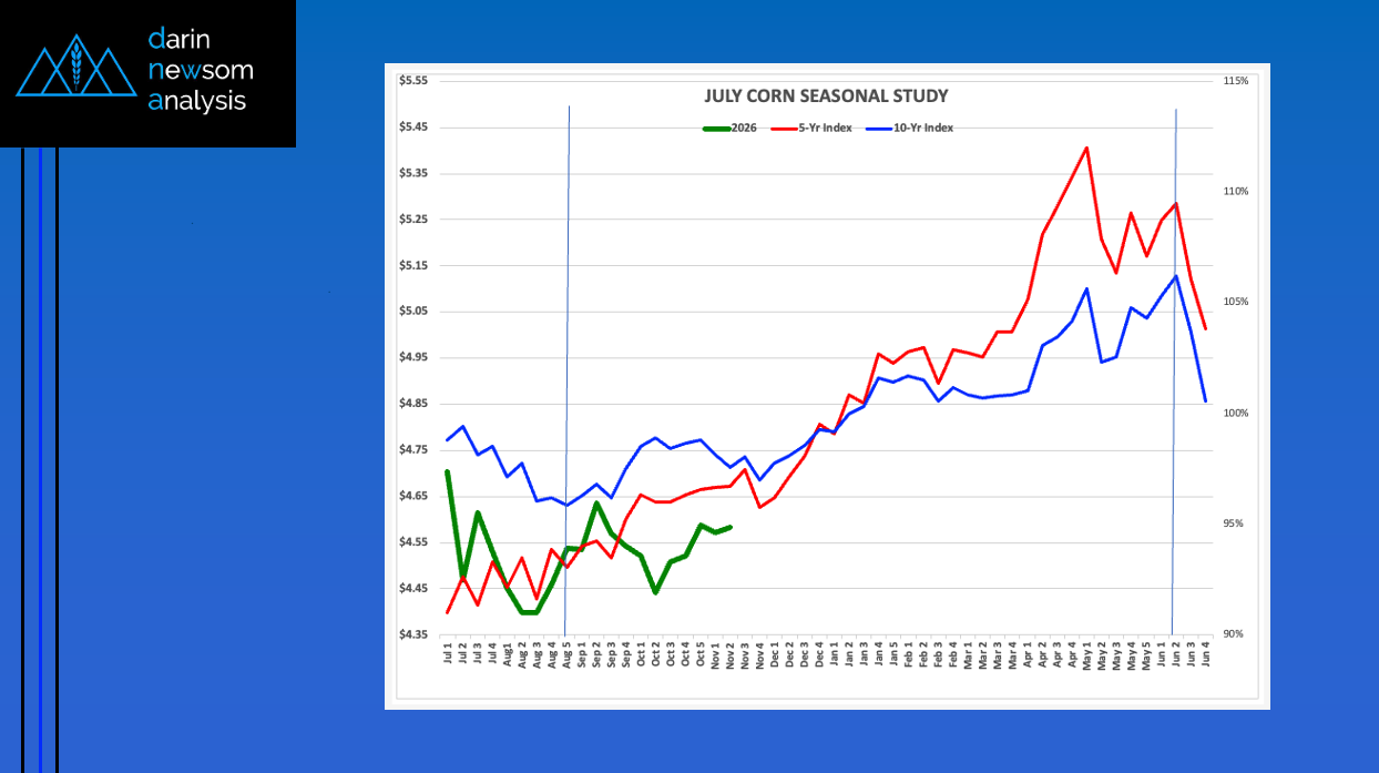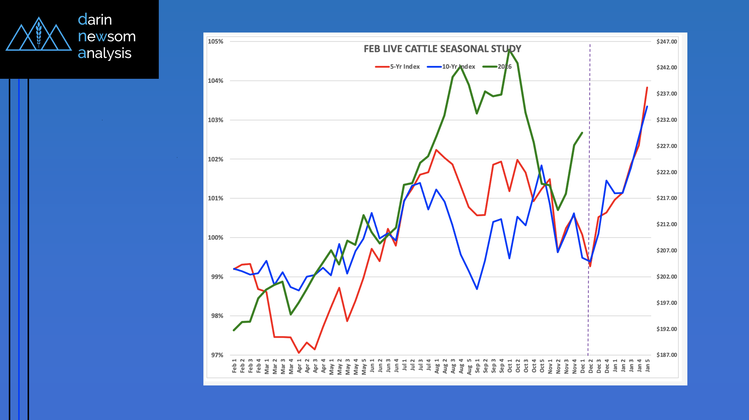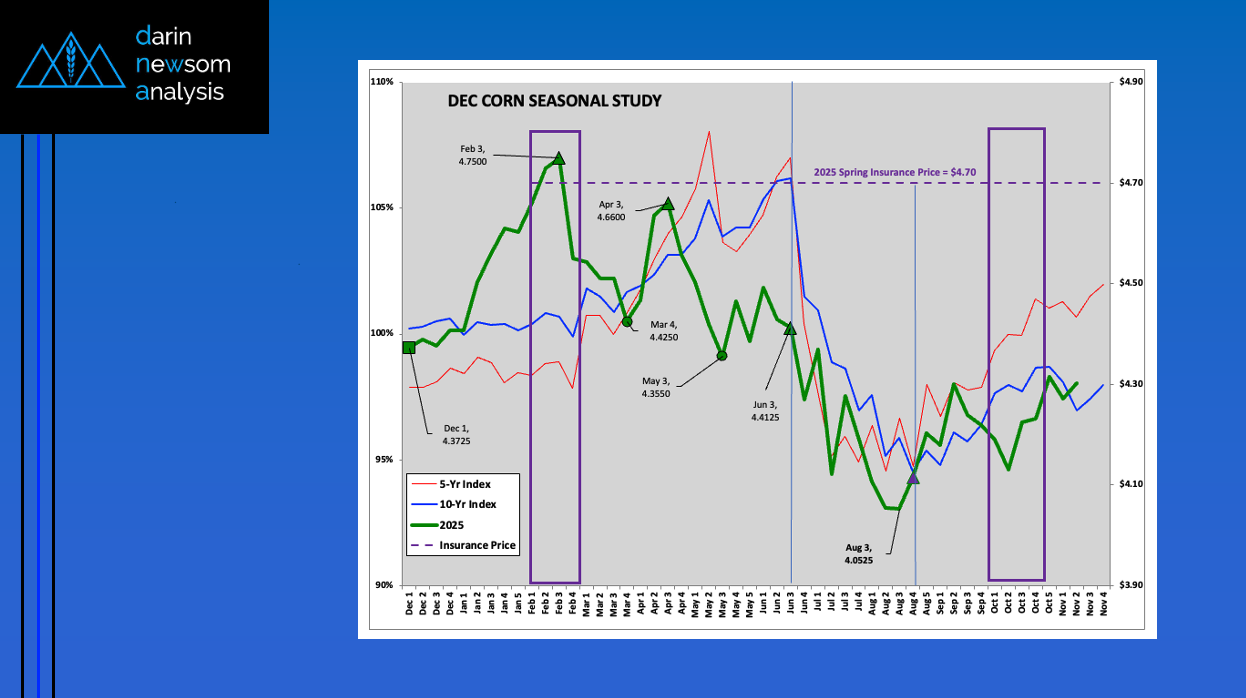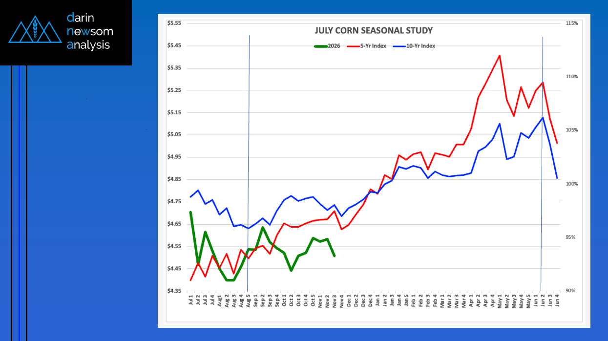 Dec Corn tends to trend up from the fourth weekly close of August through the last weekly close of November The 5-year index (red line) shows an average gain of [...]