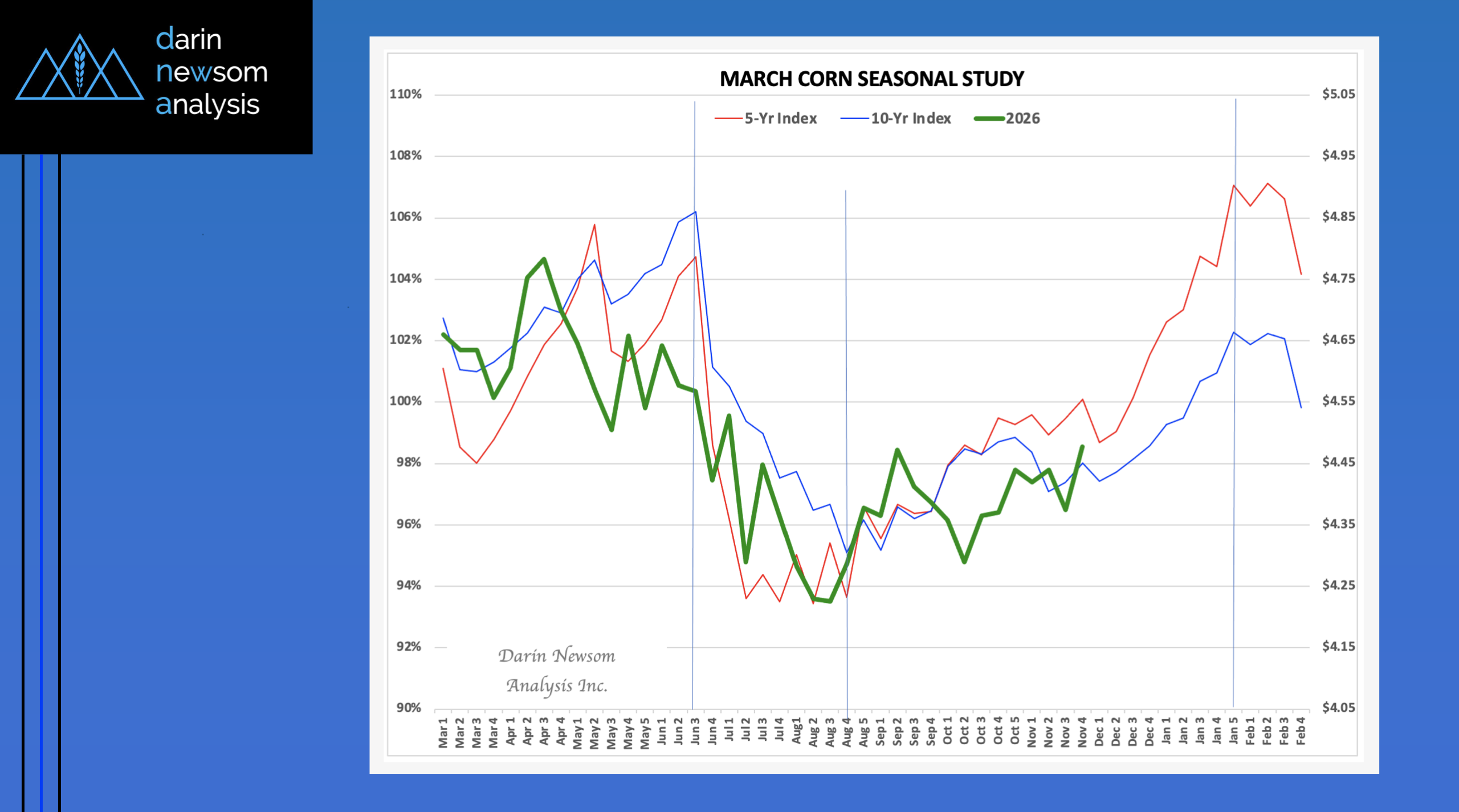 March Corn tends to trend up from the fourth week close of August through the last weekly close of January (slide 1) The 5-year index (red line) shows an average [...]