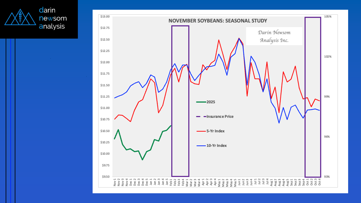 As discussed Monday with December Corn, the US government insurance base price for soybeans is set during February using the average daily closing price for the November Soybean futures contract. [...]
