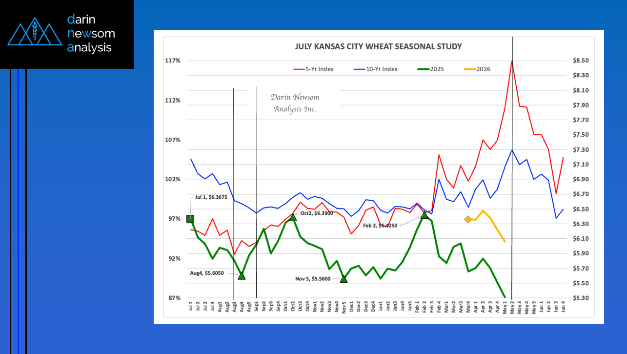 Seasonal Analysis: Bearish The new-crop July HRW contract tends to rally from the first weekly close of December through the second weekly close of May. The 5-year index shows an [...]