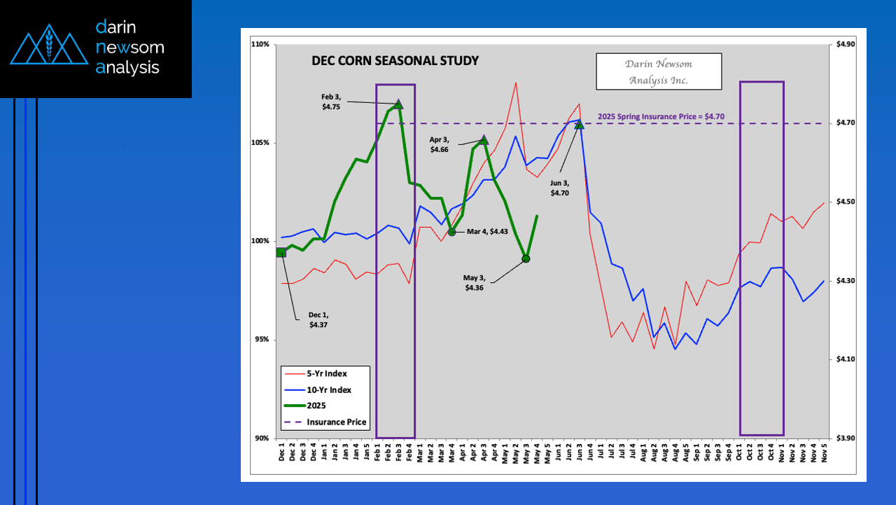 Seasonal Analysis: Dec corn tends to rally from the third weekly close of March through the second weekly close of May Gaining an average of 4% (10-year index, blue line) [...]