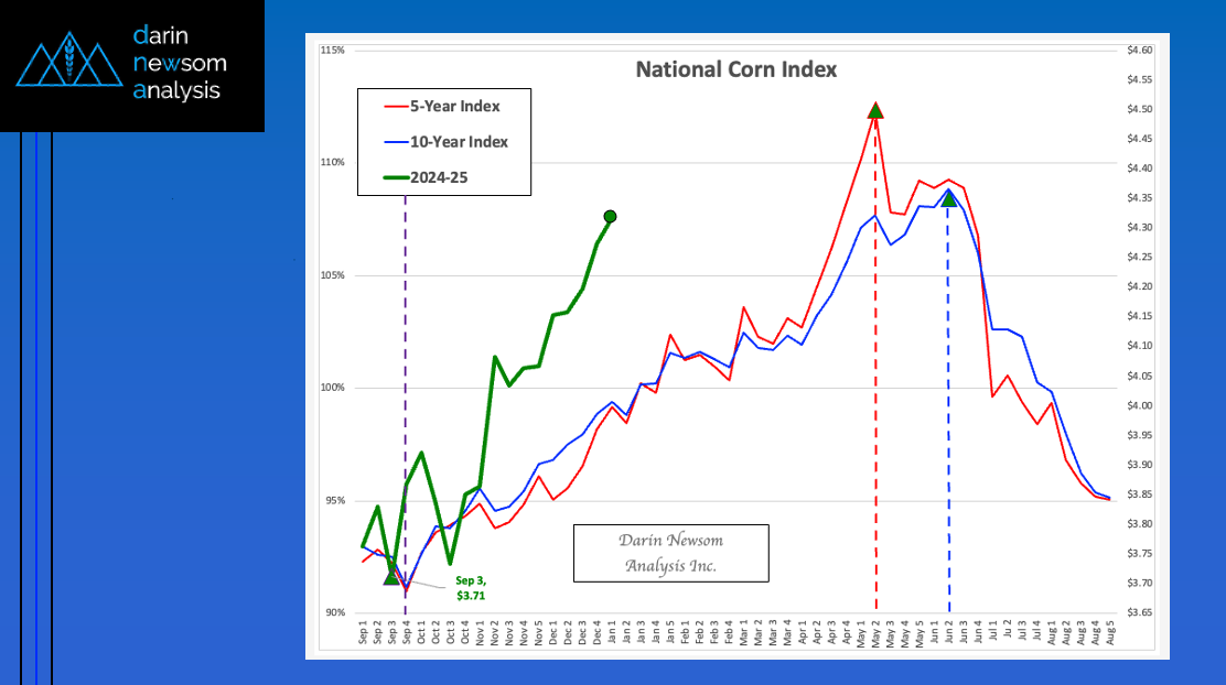 As mentioned in Thursday's Morning Commentary, the National Corn Index (national average cash price) is set to extend its seasonal uptrend. Seasonally, the NCI: Tends to post a low weekly [...]