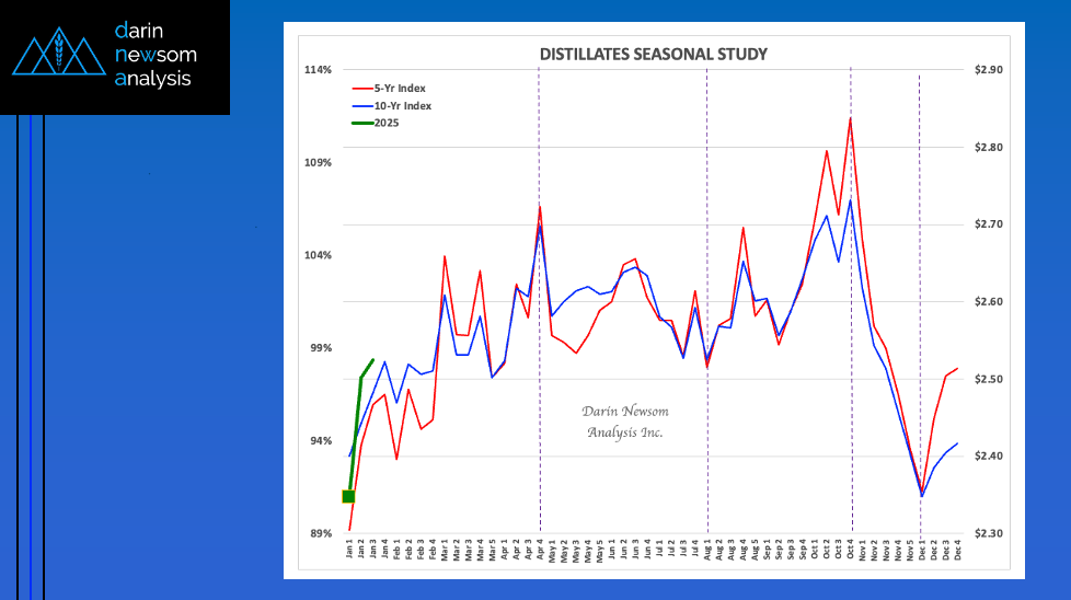 2025 has begun with a rollicking move in the distillates market, a category that includes heating oil, diesel fuel, jet fuel, etc. The spot-month futures contract posted a low weekly [...]
