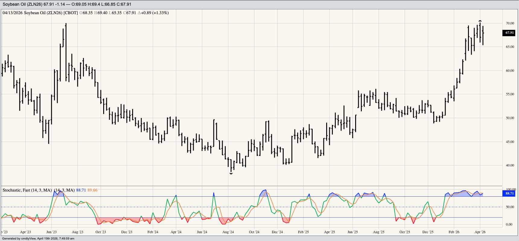 Theoretical Positions Cash sales were likely made during harvest. Investors could’ve bought the July contract near the weekly close of 65.82 based on a bullish 2-week reversal pattern. Additional or [...]