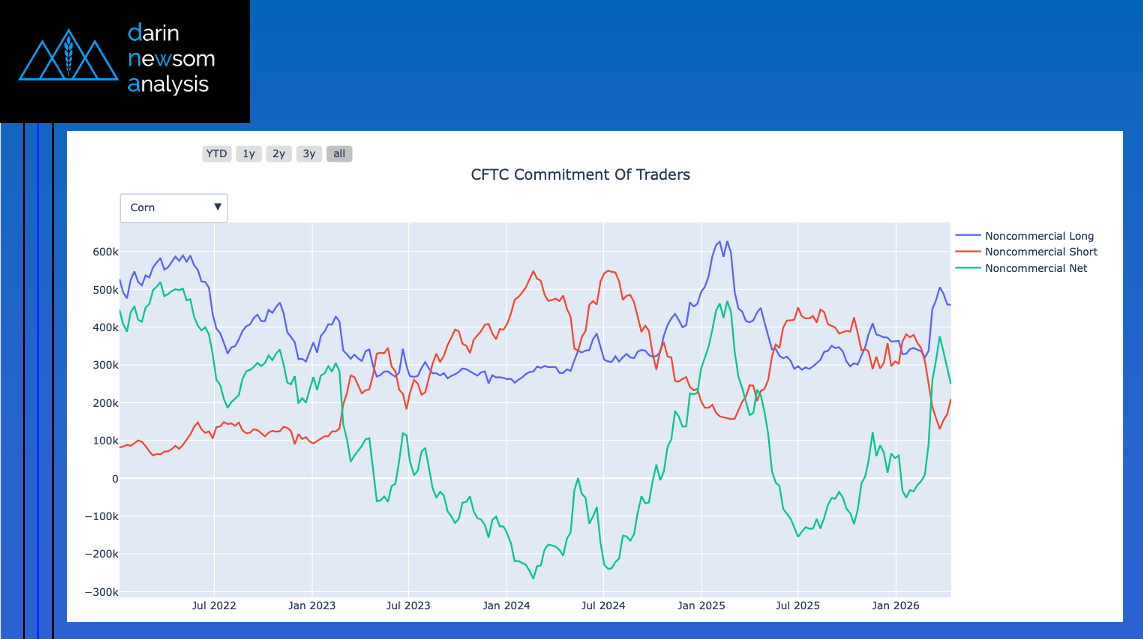 DNAI Algorithm (Position/Action/Percent) Weekly: Short/Add Previous Week: Short/Neutral Theoretical Positions Hedgers 2026 Crop: A small percentage of expected production may have been priced near the recent weekly close of $6.2450 [...]