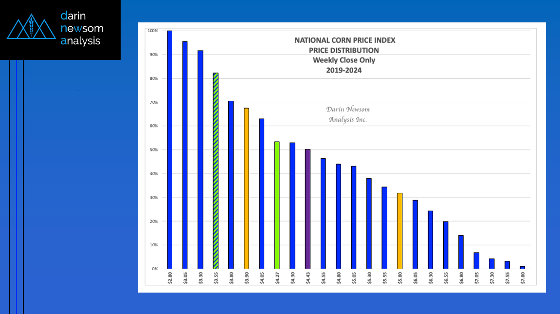 Theoretical Positions: End-users: Fall 2024 (roughly 3 months, or September/October/November) needs could’ve been covered near the weekly settlement for the National Corn Index of $3.6850 (Dec24 futures at $4.01) the [...]