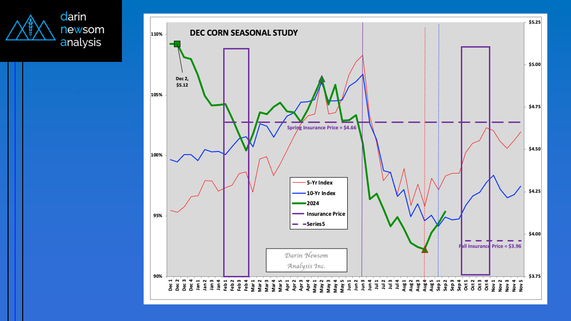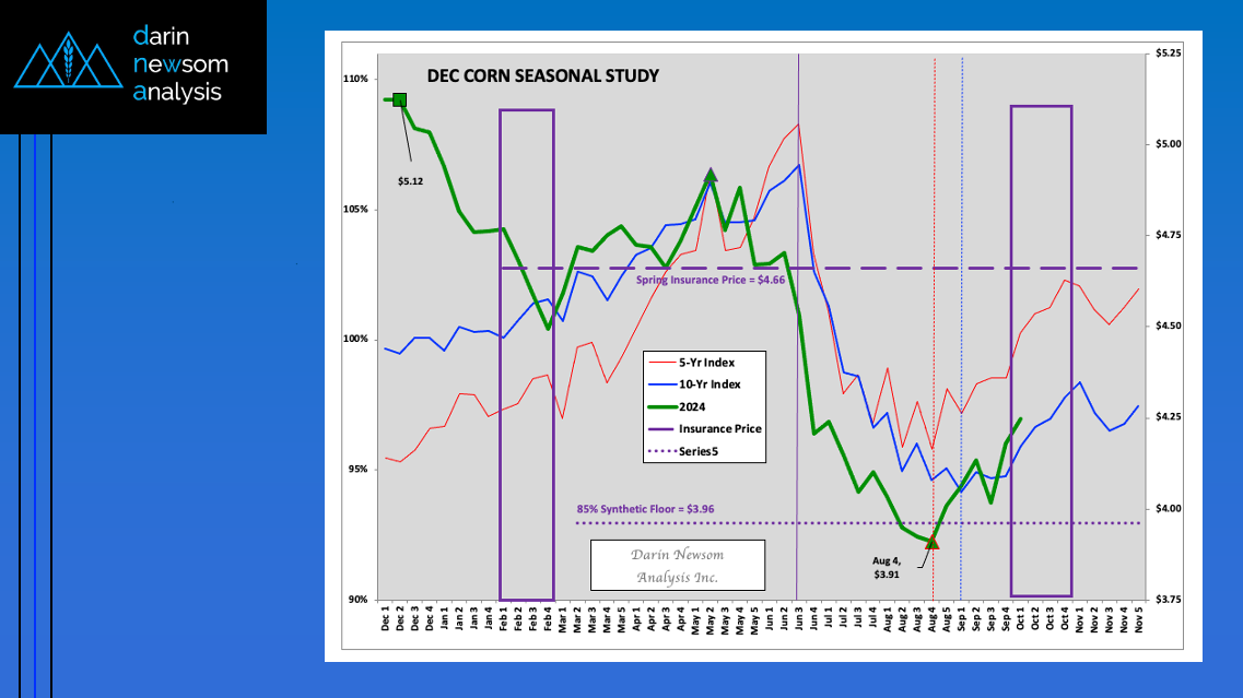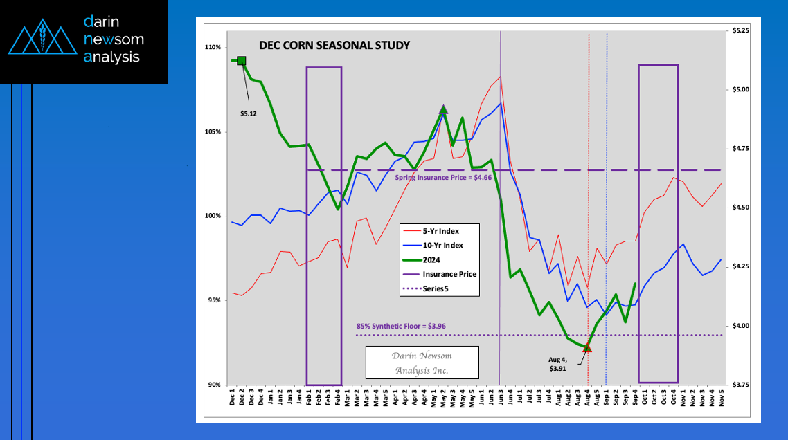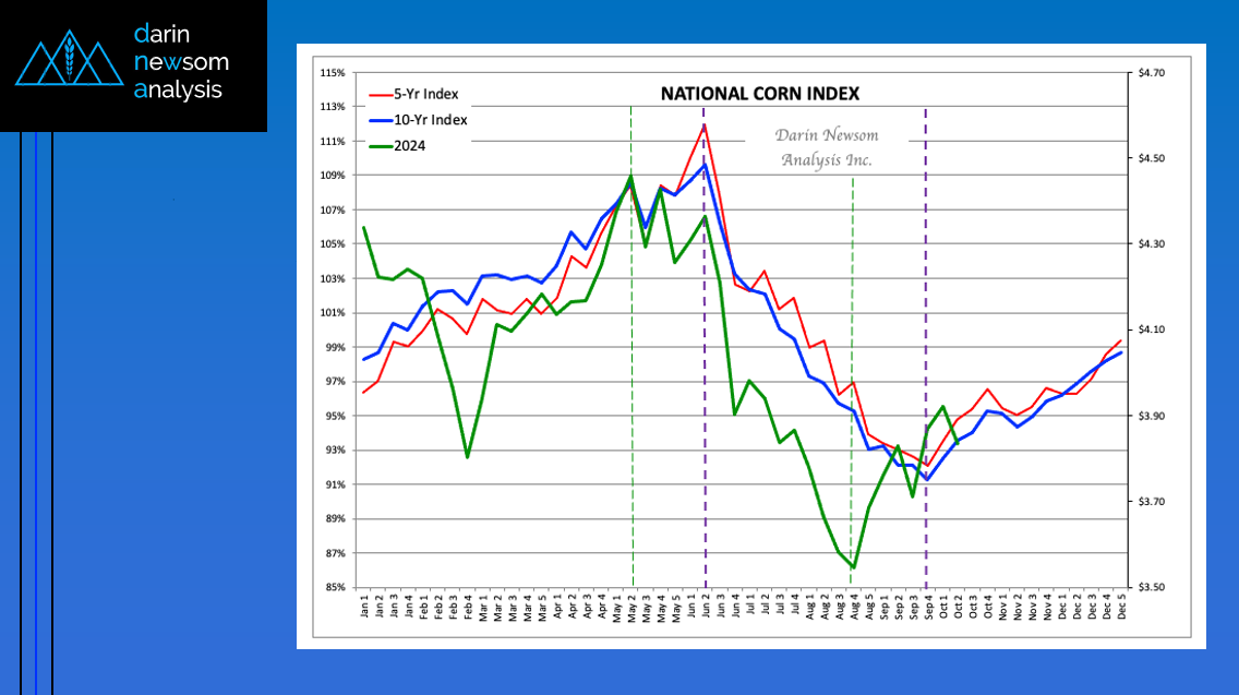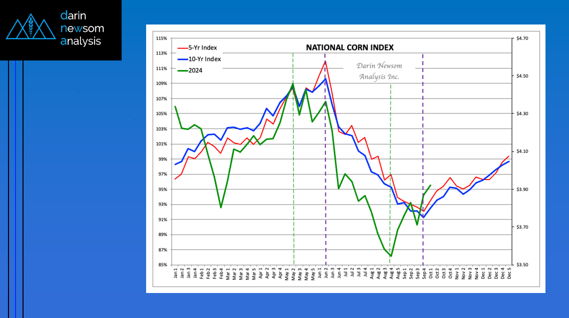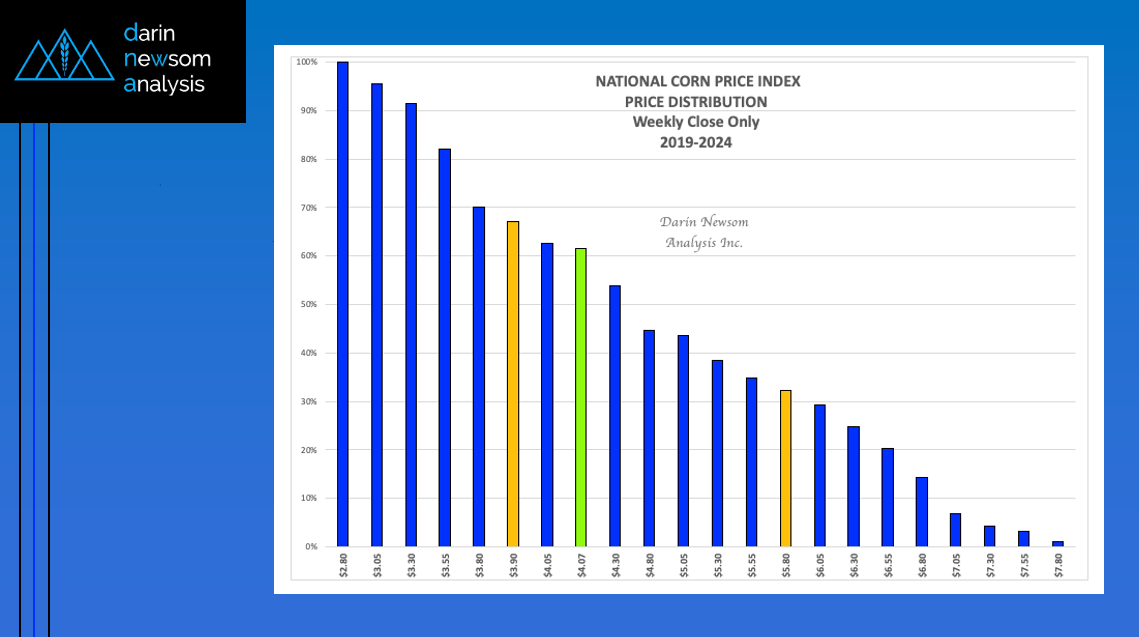 Theoretical Positions: End-users: Intermediate-term (roughly 3 months, or September/October/November) needs could’ve been covered near the recent weekly settlement for the National Corn Index of $3.6850 (Dec24 futures at $4.01). Producers: [...]