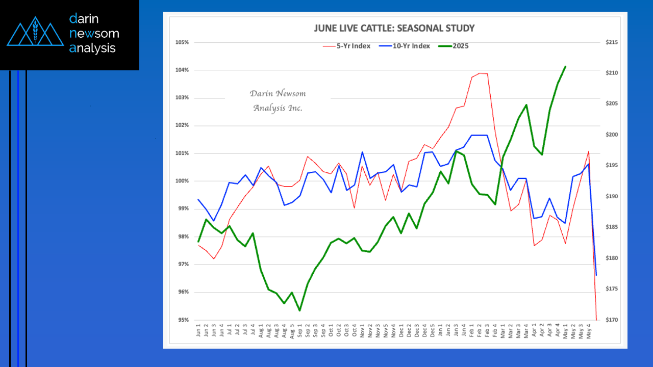 Theoretical Positions: Cash cattle can continue to be sold when ready. Seasonal Analysis: Bullish Jun25 extended its contra-seasonal uptrend to a new high weekly close of $214.65 last Friday A [...]