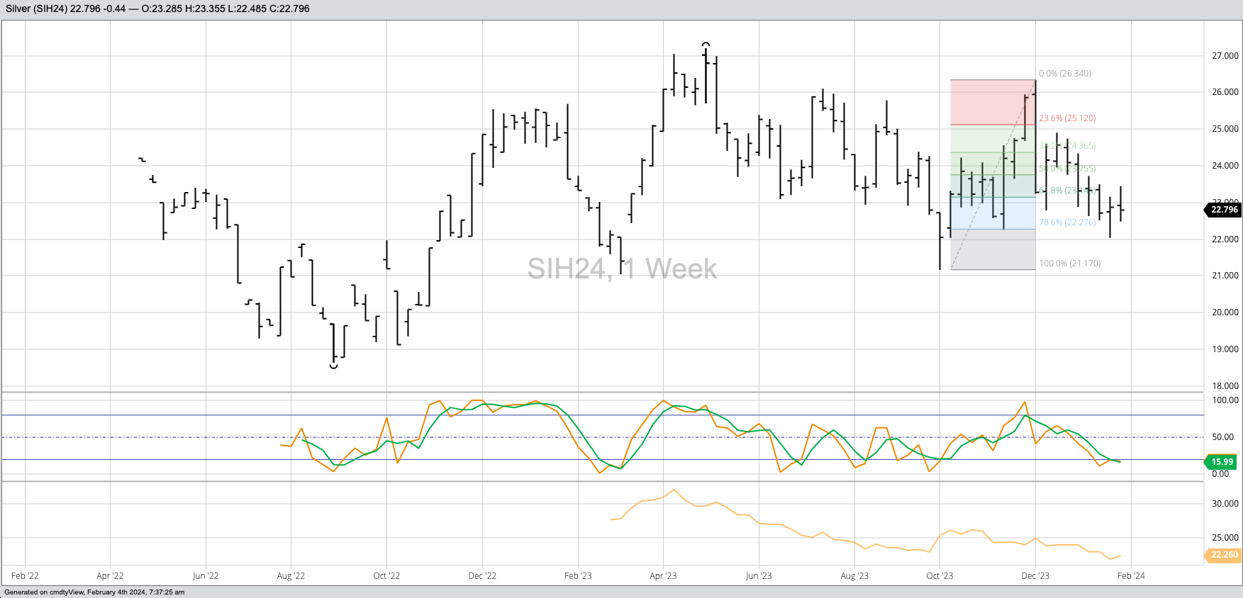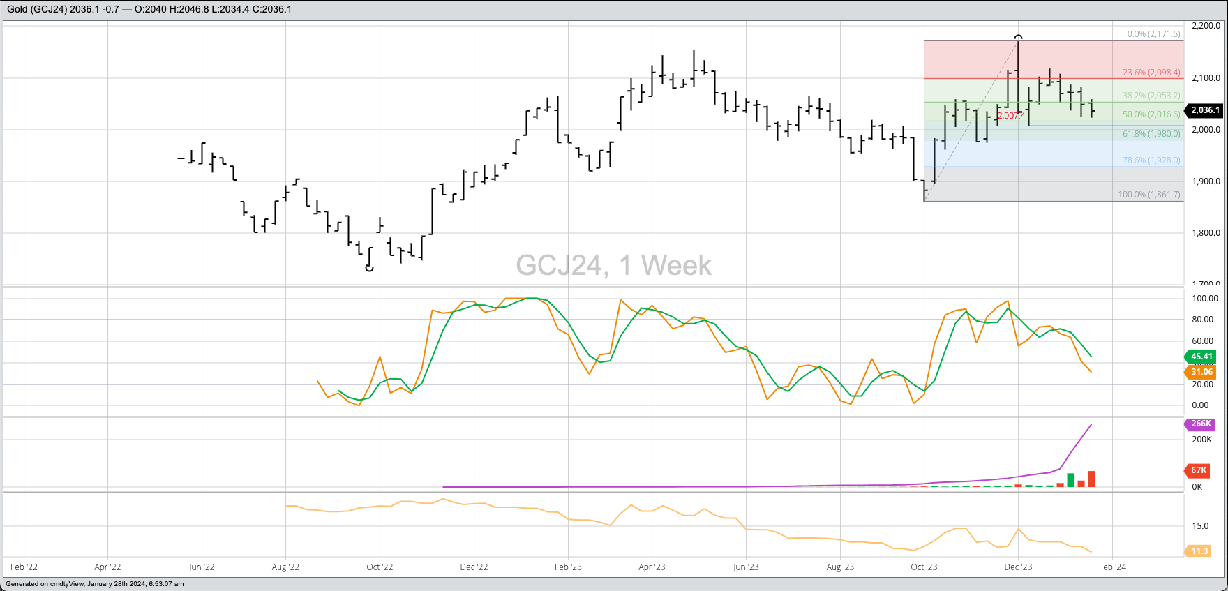 Theoretical Positions: Traders are likely short the April gold contract, first from the close near $2,033.90 (week of December 4) then possible near the weekly close of $2,091.80 (week of [...]