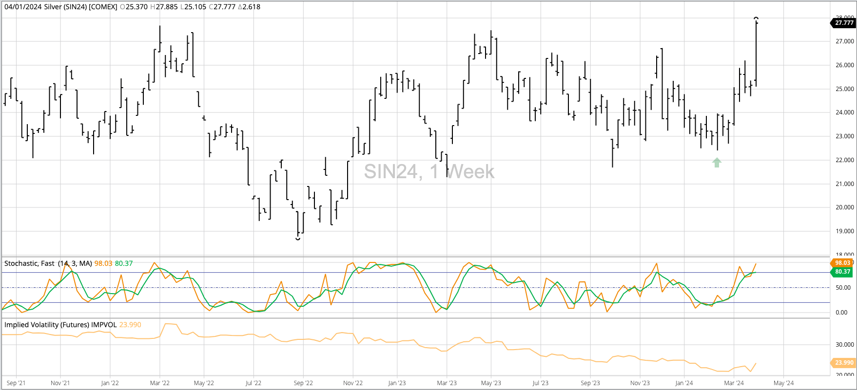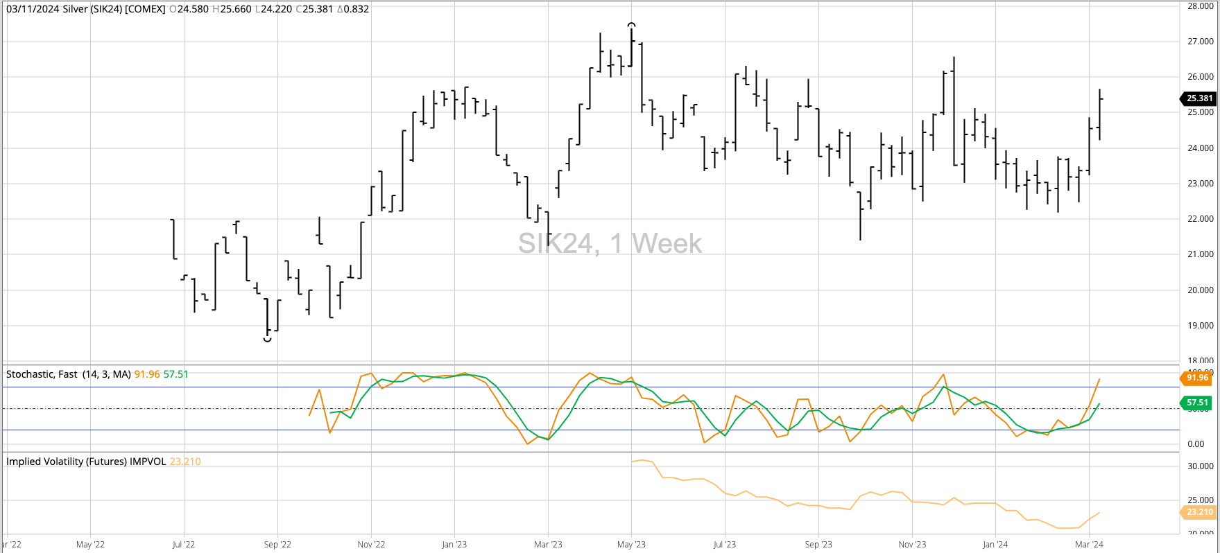 Theoretical Positions: Traders could be long based on the previous week's bullish key reversal. If so, the long position would be near the previous week's close of $23.686 with sell [...]