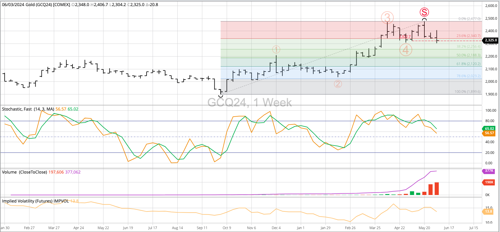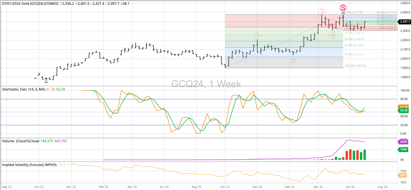 Theoretical Positions: Traders could've covered longs and gone short the August futures contract near $2,356.90. This was the close the week of May 20 as the contract completed a bearish [...]