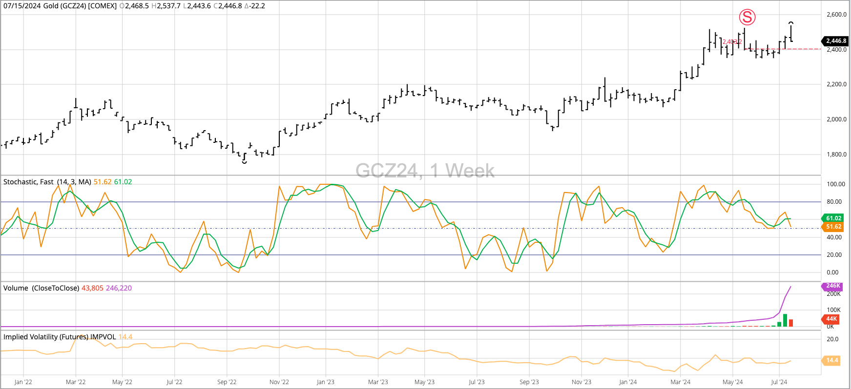 Theoretical Positions: Traders could’ve sold the December futures contract near $2,403.20. This was the close the week of May 20 as the contract completed a bearish key reversal. It's possible [...]