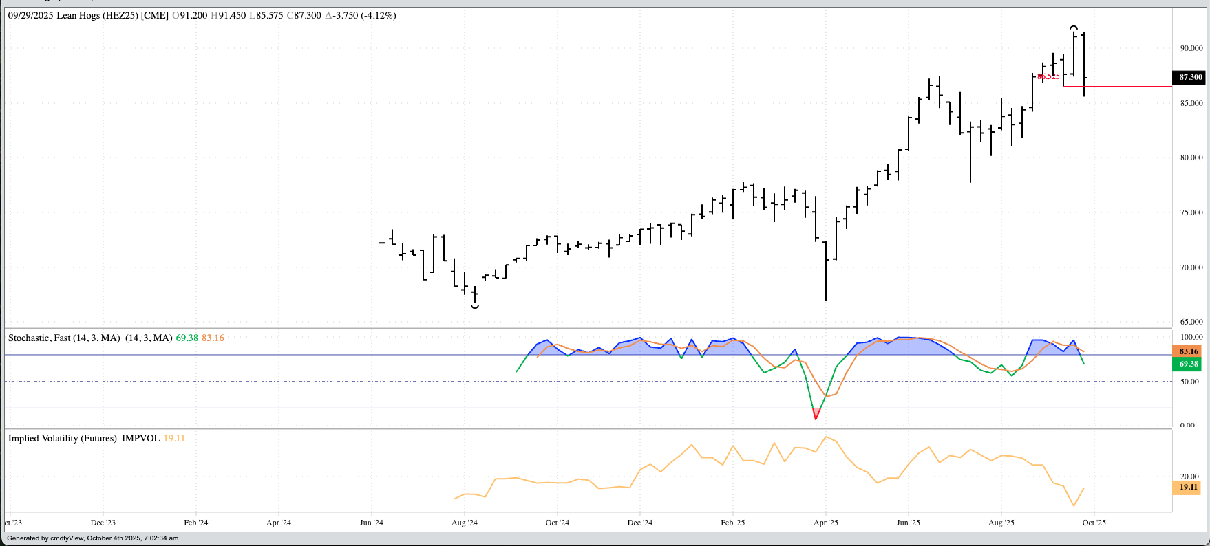 Theoretical Positions: Cash sales can be made when cattle are ready. Trend: Up While the November futures contract closed lower last week (green line), I'm going to apply the One [...]