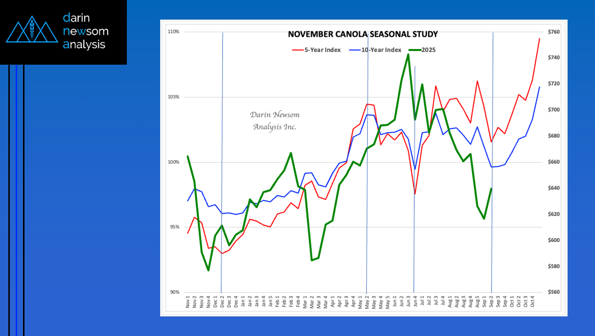 Theoretical Positions: Cash sales have likely been made during harvest. Additional sales could be postponed given the National HRS Index looks to have moved into a seasonal uptrend. Seasonal Analysis: [...]