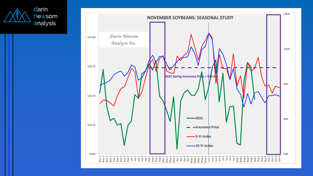 Theoretical Positions: 2025 Harvest: Newly harvested bushels could’ve been sold across the scales given the Cash Index seasonal downtrend Producers might’ve locked in a small part of expected 2025 production [...]