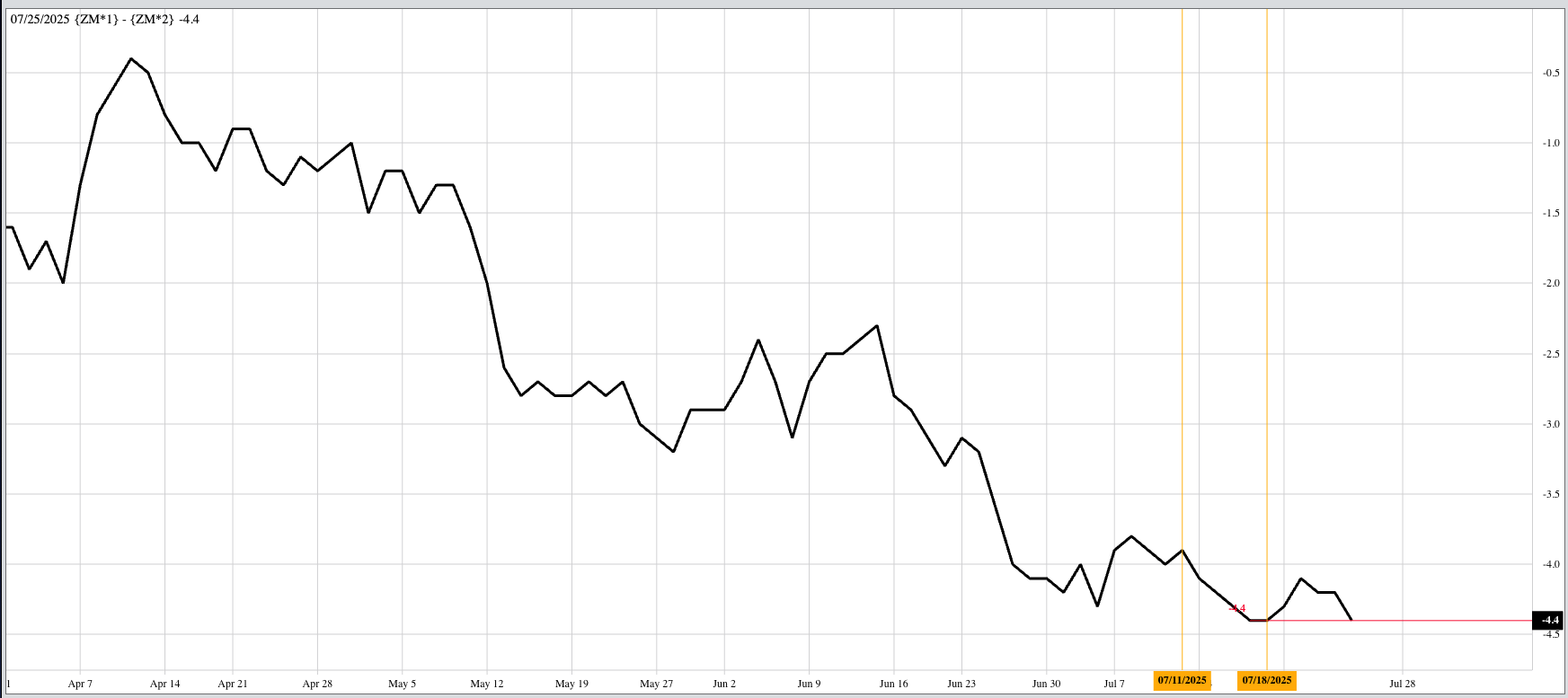 Theoretical Positions: Investors (See Chart of the Day from Wednesday, July 16) Previous Positions Short Dec25 at roughly $4.60 Dec25 closed last Friday at $4.19 Short options added roughly 40 [...]