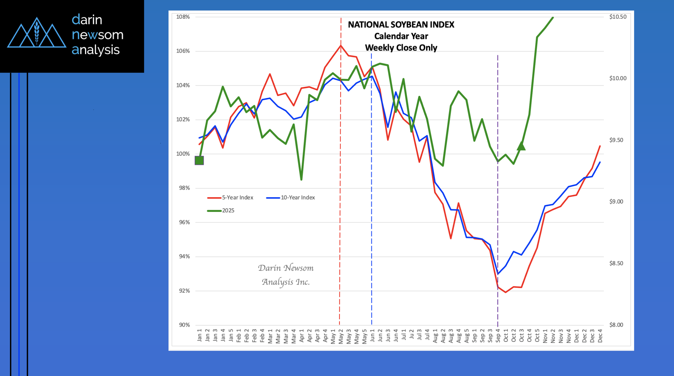 Theoretical Positions: 2025 Harvest: Newly harvested bushels could’ve been sold across the scales given the Cash Index seasonal downtrend. Investment Traders: Dec25 (or March26) could’ve been bought near the recent [...]
