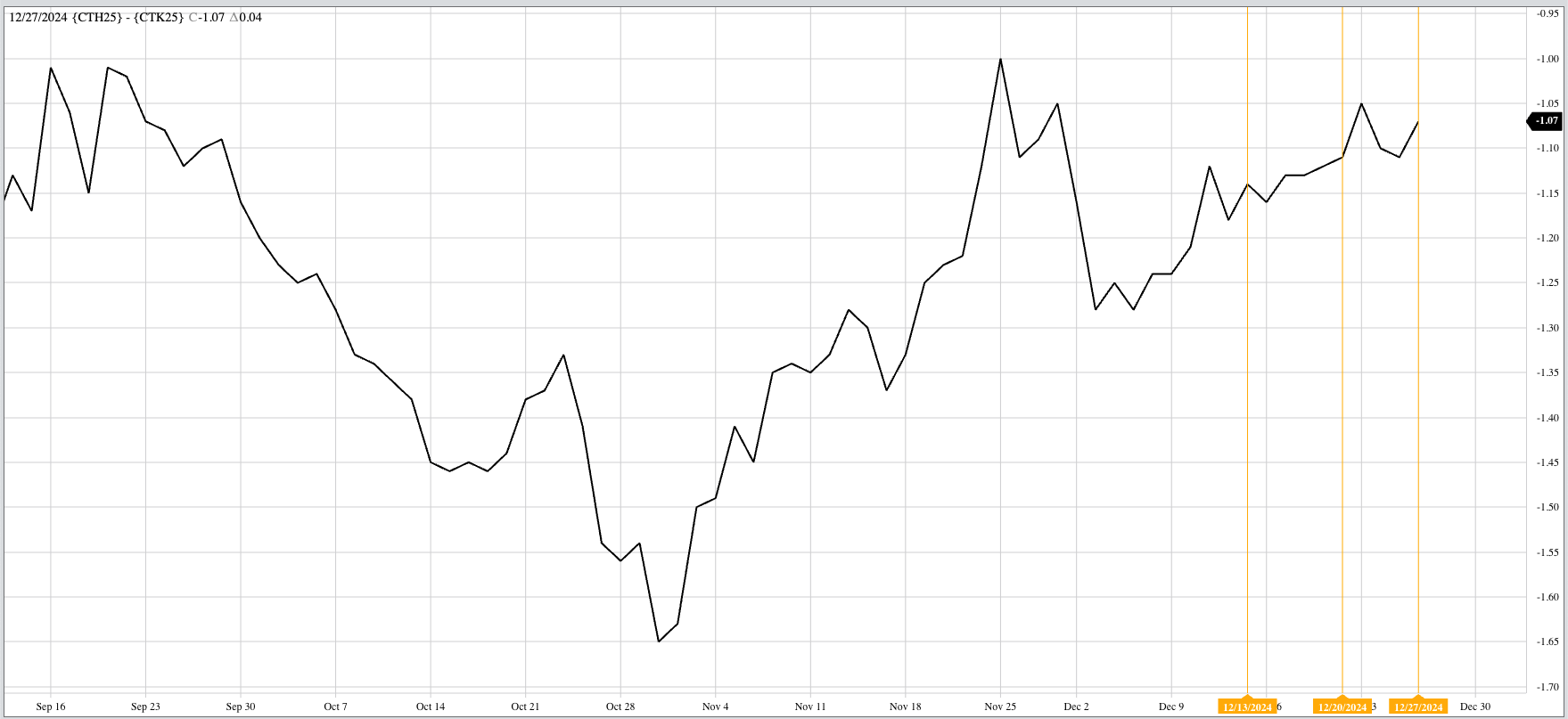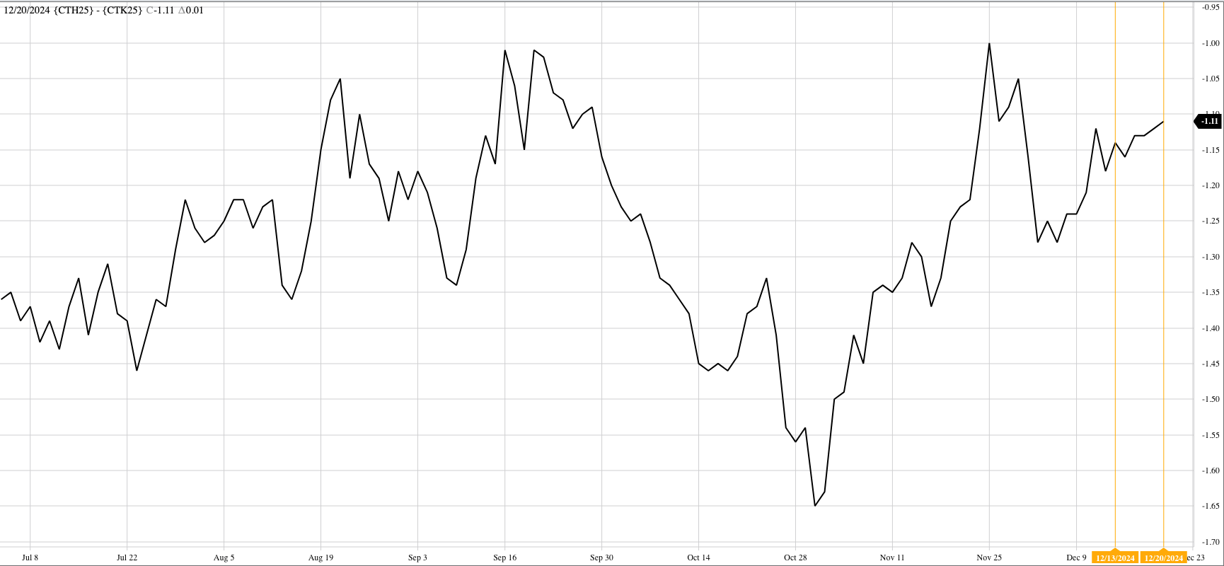 Theoretical Positions: New-crop December 24 short hedges may have been put in place with the completion of a bearish spike reversal the week of February 26. Dec24 closed that week [...]