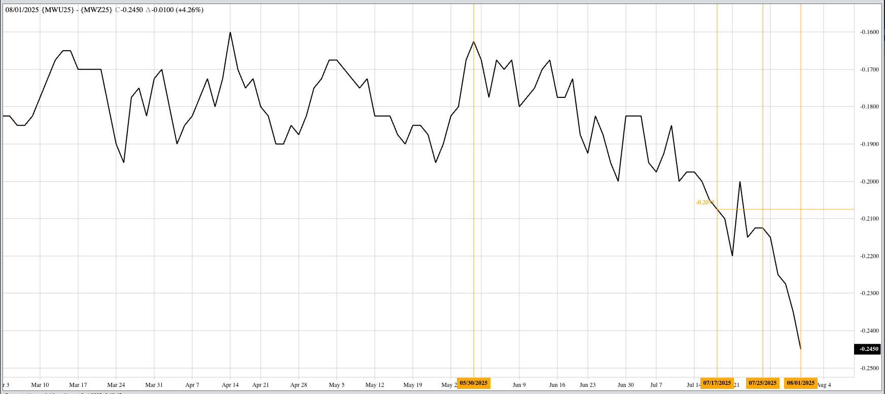 Theoretical Positions: Attention will be turning to opportunities in the new-crop market, starting with the September 2025 futures contract. The Sept25 issue closed Friday at $6.5675, up 11.5 cents for [...]