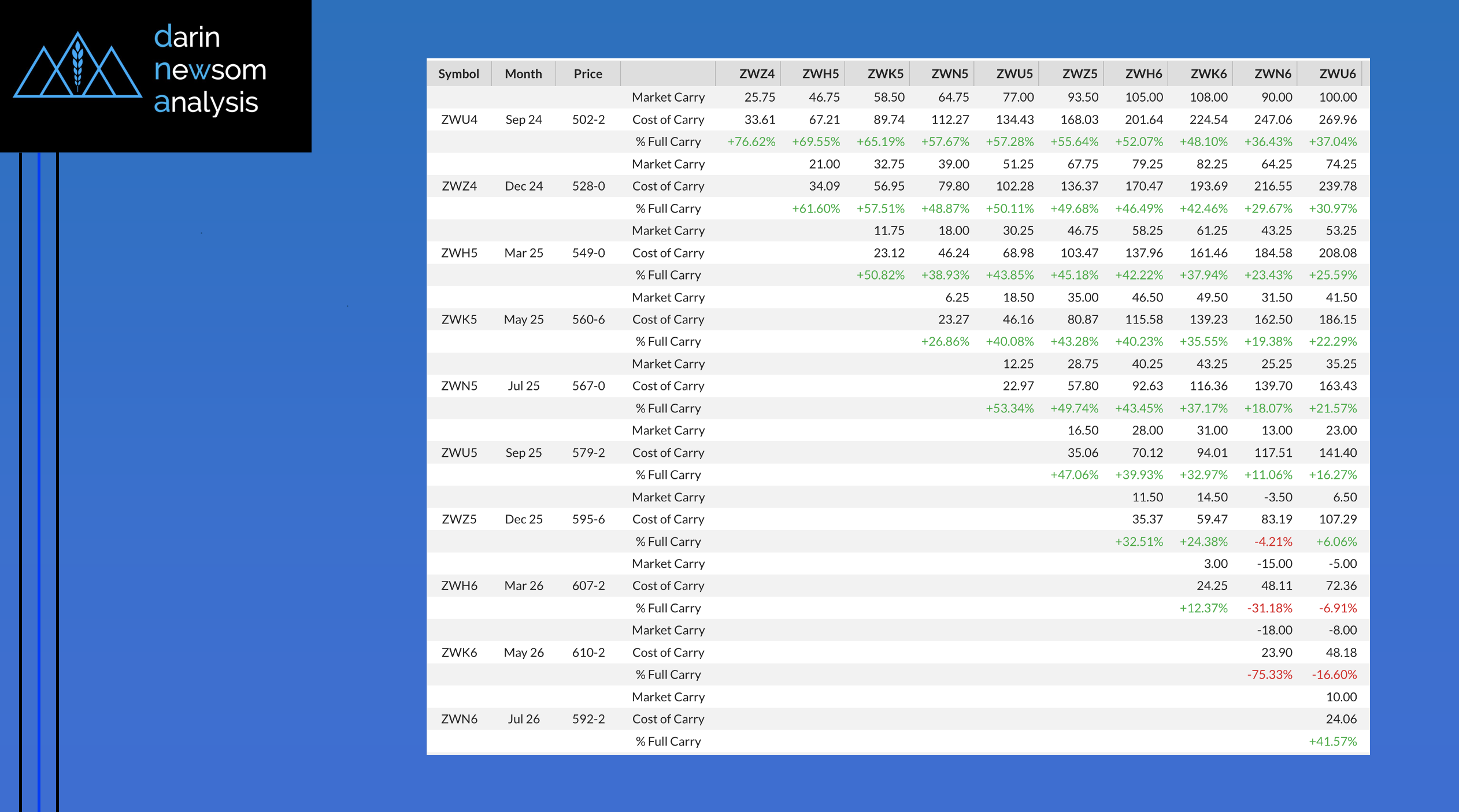 Theoretical Positions: 2024 SRW wheat production has likely been sold as harvest progressed. As of Friday's close there is no indication of a bullish reversal, meaning bushels do not need [...]