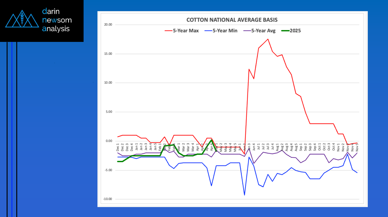 Cotton National Average Basis Darin Newsom2025-05-04T06:58:44-05:00May 4th, 2025|Basis| Username Password Remember Me Forgot Password Related Posts Corn April 26th, 2026 Soybeans April 26th, 2026 HRW Wheat April 26th, 2026 SRW Wheat April 26th, 2026