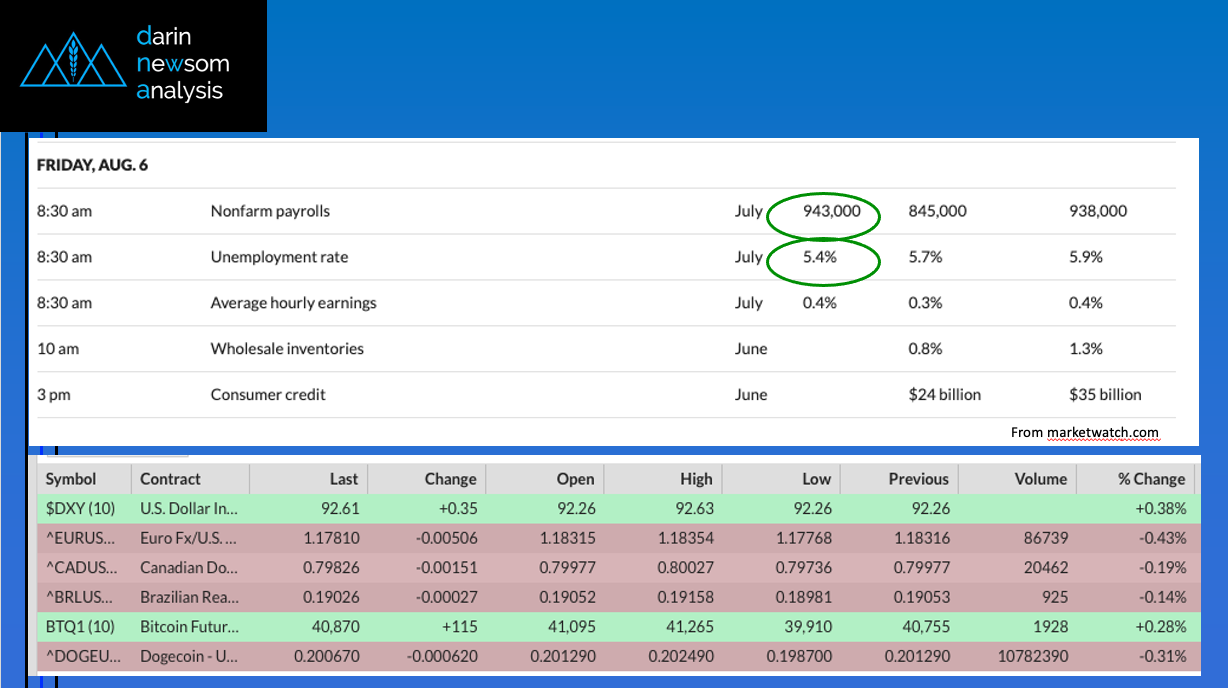 The July jobs data was released at 8:30 (ET) Friday morning, with the general consensus being both nonfarm payroll and the unemployment rate could be considered bullish:
