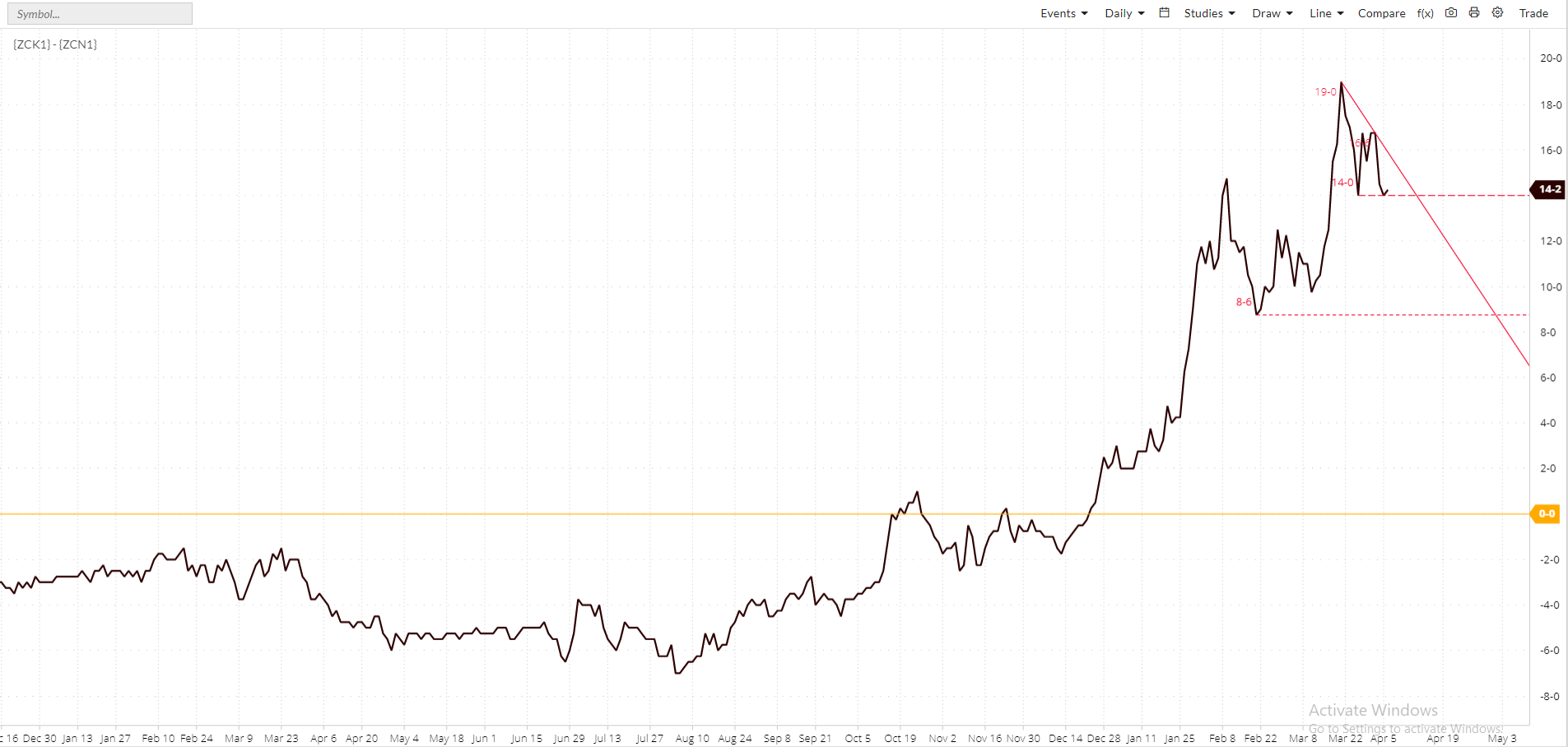 May-July Corn Spread: Testing Support Darin Newsom2021-04-06T08:57:55-05:00April 6th, 2021|Charts| Username Password Remember Me Forgot Password Related Posts November Soybeans Daily April 22nd, 2026 July Corn Daily Close Only April 15th, 2026 June Live Cattle Weekly April 10th, 2026 Soybean Meal Forward Curve April 9th, 2026