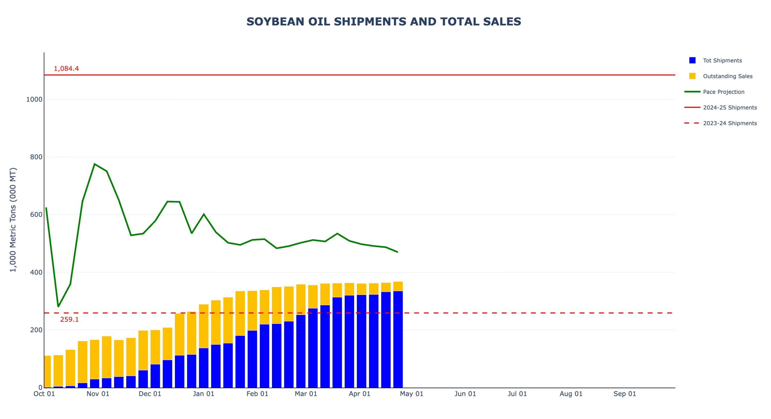 Soybean Oil Sales and Shipments Darin Newsom2026-04-30T09:59:54-05:00April 30th, 2026|Commentary, Report Commentary| Username Password Remember Me Forgot Password Related Posts Corn Sales and Shipments April 30th, 2026 Soybean Sales and Shipments April 30th, 2026 Soybean Meal Sales and Shipments April 30th, 2026 Cotton Sales and Shipments April 30th, 2026
