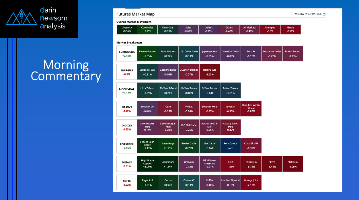 The Usual Suspects Darin Newsom2025-12-31T05:45:39-06:00December 31st, 2025|Commentary, Morning Commentary| Username Password Remember Me Forgot Password Related Posts PM Commentary: Metals Rebound December 30th, 2025 Metals Rebound December 30th, 2025 AM Commentary: Two Out of Three Are Mad December 30th, 2025 Two Out of Three Are Mad December 30th, 2025
